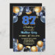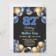Elegant blå silver guld 87-års födelsedagsfest inbjudningar