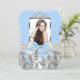 Blå & Silver Quinceañera-inbjudan. Vacker diamantbåge & tiara med silverrosdesign. Lägg till dina egna detaljer & foto. OBS! Alla platta bilder! De har INTE riktigt silver, Bågar, Diamanter eller Juveler!!