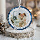 Elegant blå snöflinga dubbelsidig julfotografí julgransprydnad keramik
