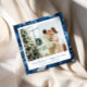 Fira säsongen med det här eleganta fyrkantiga julkortet som har en festlig blå snöflingrand runt ditt familjefoto. Den moderna vinterdesignen gör det perfekt för att skicka varma hälsningar till vänner, familj eller kollegor under högtiden. Med en fyrkantig form som sticker ut från traditionella kort är det ett stilrent sätt att dela dina jul- och nyårshälsningar. En vacker souvenir som nära och kära kommer att värdesätta.
