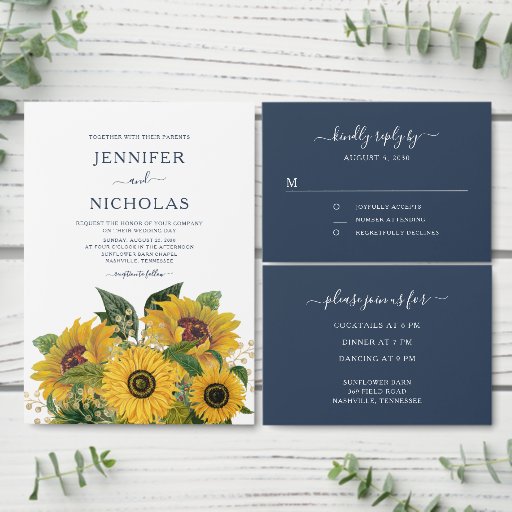 Elegant Floral Sunflowers Navy Blue Wedding SuiteDesignad av Maggie B Design