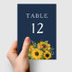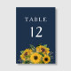 Elegant blå solrosbröllop bordsnummer