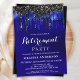 Elegant blå svart glitterdroppes pensionsfest inbjudningar