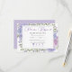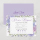 Denna sofistikerade design har mjuka syrentoner kompletterade med ömtåliga vattenfärgshydrangeablommor i nyanser av blå, syrén och rosafärgad. Den graciösa skrivstilstypografin i kombination med en ren, modern layout skapar en förfinad och romantisk estetik. Perfekt för iRSVP-detaljer, denna design lägger till en tidlös blomsterlig touch till bröllopspapper med sin milda färgpalett och eleganta botaniska accenter.