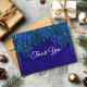 Ett coolt flickigt blå glitter droppande akvamarin turkos lila monogram tackkort. Glittrande sött glitterigt julkort. Perfekt att skicka till familj eller vänner under högtiderna, födelsedagar eller andra tillfällen. För att göra det extra speciellt är det utsmyckkat med vackert falskt glitter. Denna design kan också överföras till vilken produkt som helst på zazzle. Du kan anpassa den med din egen text och information.