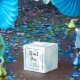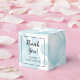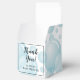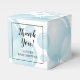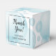 Elegantens blåa tvålbubblans barnduschfest. Utformning av kacklåda med anpassningsbar tack för ditt meddelande och namn. Skripttypografisk mall för penselskript i chic med finare fyrkantiga gräns. Roligt ge bort för gäster, vänner och familj. Personligens babyduschutrustning party för firande i nyfödd bebis. Lägg till ditt nyfödda barns namn på framsidan och baksidan. Säg tack med en liten present. Fyll förpackningen med godis, behandling eller en liten gåva. Det är en pojke! Hooray!