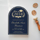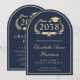 Elegant blå universitets-examensfestbåge med skrif inbjudningar