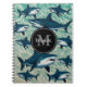 Elegant blå vit haj Personlig monogram anteckningsbok