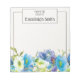 Elegant blå och vit akvarell blomster botanisk företags-/kontorsmall anteckningsblock med text, "Från skrivbordet hos" och ditt namn.