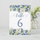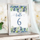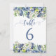 Elegant blåa blommor bröllop bordsnummer