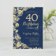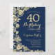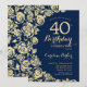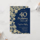 Blommigten för marinblå guld 40-årsdag. Elegantens utformning med ro, faux guld-folie och typsnitt för typsnitt. Trendig inbjudan-kortets perfekt för en snyggt kvinnlig dag firande. Kan anpassas till vilken ålder som helst. Skrivna Zazzle-inbjudningar eller digital utskrivbar mall för omedelbar nedladdning.