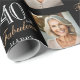Elegant Black 40 och Fabulous 40 Birthday Photo Wrapping Papper. 40 och fantastisk text i trendiget skript med namn på svart bakgrund. Anpassa den med foto, namn och ålder. Det är en underbar personlig fotopresentfilm för en kvinnas födelsedag.