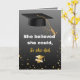 Celebrate her incredible achievement with this elegant and modern graduation card! Featuring a sophisticated black and gold theme, this design showcases the inspiring quote, "She believed she could, so she did," in beautiful gold typography. The minimalist layout is accented with a classic graduation cap and shimmering gold stars, making it a perfect keepsake for high school, college, or university graduates.A perfect card for High School or College graduation!