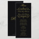 Det här bröllop-menykortet kan vara personlig till kostym om din bröllopsmottagningsinformation. Hjärtkrämen i guld blomstrar och monogram på svart dekorerar detta kort. En del av vår Elegant Black & Guld Heart Flourish bröllopssviten designad av konstnären Susan Coffey.