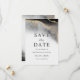 Ett fantastiskt utmärkande bröllop spara datum-kort med en elegant svart, guld och grått marble mönster som överlappar ovanpå designen i contemporary stil. Enkla, skarpa teckensnittspar ökar elegansen i denna lyxiga design. På baksidan av kortet finns en fotomall som du kan använda för att ladda upp önskat foto. Anpassa textmallen med dina uppgifter.
