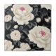 Elegant Black and Ivory Blommigt Kakelplatta