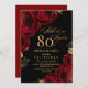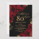 Elegant Black and Röd ros Blommigt 80:e födelsedag Inbjudningar