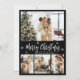 Elegant, Modern Black and White 4 Photo Collage God jul Script Helgdag Card. Den här sjutna, visuella, minimalistiska, (4) fyra fotokortsmallar har en söt fotokollage, en snöflake och säger God jul! Texten "God jul" hälsning är skriven med ett vackert, vitt, färg-handskrivet typsnitt på svart färg-bakgrund. På baksidan med hälsning-textmallen svart. Söt hälsningskort för din familj och dina vänner under denna jul och Julhelg.