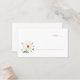 This elegant wedding place card features a beautifully illustrated white peony with vibrant orange stamens, surrounded by lush green leaves. The design employs a minimalistic layout with ample negative space, enhancing the sophisticated and contemporary aesthetic. A simple, clean font in a muted reddish-brown hue complements the botanical motif, creating a refined and calming mood perfect for special occasions. Ideal for adding a touch of understated luxury to your wedding decor, this card is customizable for easy personalization.