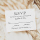 Utformningen av svarskort för elegant och klassisk svartvitt i bröllop kan helt enkelt vara personlig med OSANS förfallodatum och en rad för det totala antalet gäster som deltar.