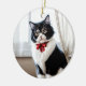 Elegant Black and White Cat Portrait Julgransprydnad Keramik