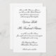 Inbjudningar i elegant bröllop som innehåller en enkel och klassisk design med traditionell formulering i en vacker svart kalligrafi över en vit bakgrund. Mallen innehåller två linjer text för överordnad till bruden och en textrad för överordnad till brudgummen. Dessa klassade bröllopsinbjudningar är perfekt för en formell, svart slips bröllop.