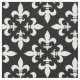 Fransken fleur de lis-konstruktionen roterar för att skapa ett diamantliknande mönster över hela den här fabriken. Den moderna vintagen med svart och vitt färg-palat och elegant skapar en parissk chic stil. En klassiker som tillfredsställer er önskan om ren och enkel sak utan att kompromissa med stil. Fleur de lis (eller fleur de lys) bokstavligt talat elaket "blomman av liljet" och det är den traditionella symbolen för Franskens ädelhet. Perfekt för lite svart och vitt Paris inspirerade stil i ert projekt.