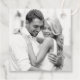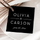 Modern och elegant märkre för svartvita bröllop har ett enkelt och minimalistiskt vitt anpassningsbar monogram av bridens och brudgummens namn och bröllop-datum på framsidan. Utrymme för ett foto finns på baksidan - perfekt för visning av ett favoritfoto för förlovningen av paret.