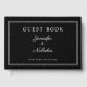 Elegant Black And White Script Wedding Guest Book.
