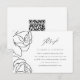 Det här moderna svarskortet för svartvit blommigt bröllop innehåller en ställe för din QR-kod så att gästerna enkelt kan osa på webbplatsen för bröllop.
