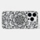 Modern och elegant svart blommigt mandala, med en samling svarta solblommor och löv, olika blommor, universum, sol, halvmånen måne och stjärnor, punkter, rand och snurrar, som bildar en vacker mandalablomma, med vit bakgrund. En magisk jord, botanik och universum inslag mandala, som ger din dekoration både positivt och glädje.