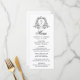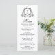 Lägg till en tidslfri tryckning på mottagningsmenyn i bord med eleganten svart blommigt i bröllop. Utformningen har parets monogram som är inramat av en sofistikerad, svart botanisk vapensköld på vit bakgrund. "Menu" visas i grå, svart calligrafi överst, följt av utrymme för att anpassa parets menyval namn, bröllop och anpassningsbar. Perfekt för klassiska, formella eller svarta och vita teman för bröllop anger personligen en förfinad ton för firande.