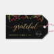 Elegant Black Botanical “Grateful” Holiday Custom Presentetikett