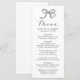 Skapa ett tidlöst utseende med den här svarta och vita menyn bröllop, med en handdragen svart båge och "Menu" i elegantens kalligrafi. Anpassa texten nedan så att du får information om namn, bröllop och menyn. Perfekt för svarttids bröllop, moderna romantiska teman eller enfärgad händelsdecor. Ett elegant och sofistikerat val för din bröllopsmottagning.