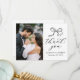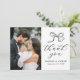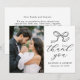 tacksamhet med det här elegant bröllop-tackkortet som visar ditt foto från lodrät bröllop till lämnat och en handdragen svart båge med "Tack" i grå svart kalligrafi på högerna mot vit bakgrund. Anpassa designen med ditt namn- och bröllop-datum för en meningsfull nyckelfråga. Kortets baksida ger utrymme för ditt personliga tack, skapar det enkelt att uttrycka en hjärtlig uppskattning till familj och vänner för deras kärlek och stöd. En tidlös svartvit design, perfekt för klassiskt, modernt eller minimalistiskt bröllop.