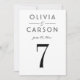 Moderna svarta och vita bröllop-bordsnummer och chic har en snyggt svart typografisk design med elegant anpassningsbar som kan vara personlig med ett monogram av brud- och trimningslägena namn och bordsnumret. Obs! Om du vill beställa lägger du varje enskilt bordsnummer (1,2,3...) till din shoppingvagn.