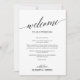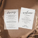 Dessa elegant svarta bröllop välkomnar brev och färdkort är perfekt för ett enkelt bröllop. Neutraltens utformning har ett minimalistiskt kort som är dekorerat med romantisk och visuell typografi. På kortets framsida finns ett välkommet brev och på kortets baksida finns en rutt i bröllop. Dessa anteckningar är perfekt för destinationsbröllop och hotellgästväskor.