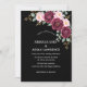 Elegant Black & Burgundy Pink Floral Wedding Inbjudningar