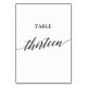 Den här eleganten är svart kalligrafi i bord tretton bordsnummer perfekt för ett enkelt bröllop. Neutraltens utformning har ett minimalistiskt kort som är dekorerat med romantisk och visuell typografi. Kortet skrivs ut på framsidan och baksidan (dubblan). Andra bordsnummer i samlingen säljs separat.