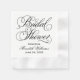 Napkins i möhippan i bröllop har en svartfärgad kalligrafi-skriptutformning som kan vara personlig med bridens namn och duschdatum.