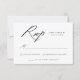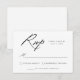 Ett enkelt bröllop OSA-kort med "OSA" som visas i ett modernt svartfärgat calligraphy-skript med vit bakgrund (eller färg efter eget val). Anpassa den svarta och vita OSA kort med önskat svarsdatum och anpassningsbarna godkänner/avvisar ordalydelsen. Den svarta kalligrafin-OSA kort var designad att samordna med vår Elegant Calligraphy bröllop samling.