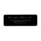 These return address labels feature a sophisticated, minimalist design with a solid black background and crisp white text. The layout is centered, showcasing elegant cursive script for names followed by clean, uppercase sans-serif fonts for addresses, creating a balanced and harmonious look. Perfect for adding a touch of class to your mail, these labels are ideal for formal events or everyday correspondence, offering both functionality and style.