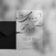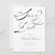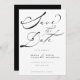 Elegant och klassy Bröllop spara datum med handskrivet typografiskt skript, vit bakgrund och svart baksida. Anpassa den med din egen bröllop-information. En contemporary som ännu är ett klassiskt Bröllop-meddelande för det moderna par.