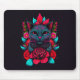 Elegant Black Cat, omgiven av Röd ros | Musmatta