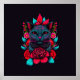 Elegant Black Cat, omgiven av Röd ros | POSTER