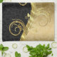 Svart blommigt-dammar med metalliska guld-blommigt-snurrar.