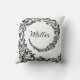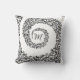 Den här dekorativa kuddedesignen har en sofistikerad svart dammformad som vrider mönster mot en skarp vit bakgrund. Ornera ram spiral mot mitten, där en cirkulär fuktkrans innesluter en redigerbar monograminledning. Dess tidlösa svartvita palett ge är en klassisk men mångsidig vädjan, perfekt för att tillföra elegans till vardagsrum, sovrum eller som en personlig gåva till bröllop, årsdagar och vardagsmat.