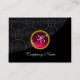 ELEGANT BLACK DAMASK ROSA RUBY GEMSTONE MONOGRAM VISITKORT