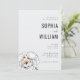 This elegant wedding invitation features a minimalist layout with clean lines and ample negative space, creating a sophisticated and modern look. The design includes a delicate floral illustration of a peony in white and yellow tones on the left side, adding a touch of natural beauty. The typography combines bold uppercase letters for the names with a cursive script for "and," enhancing the formal yet inviting tone. Perfect for couples seeking a refined and timeless aesthetic, this invitation is ideal for celebrating a special union with grace and style.