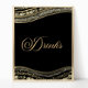 Elegant Black Gold Agate Party Drinks Sign Poster